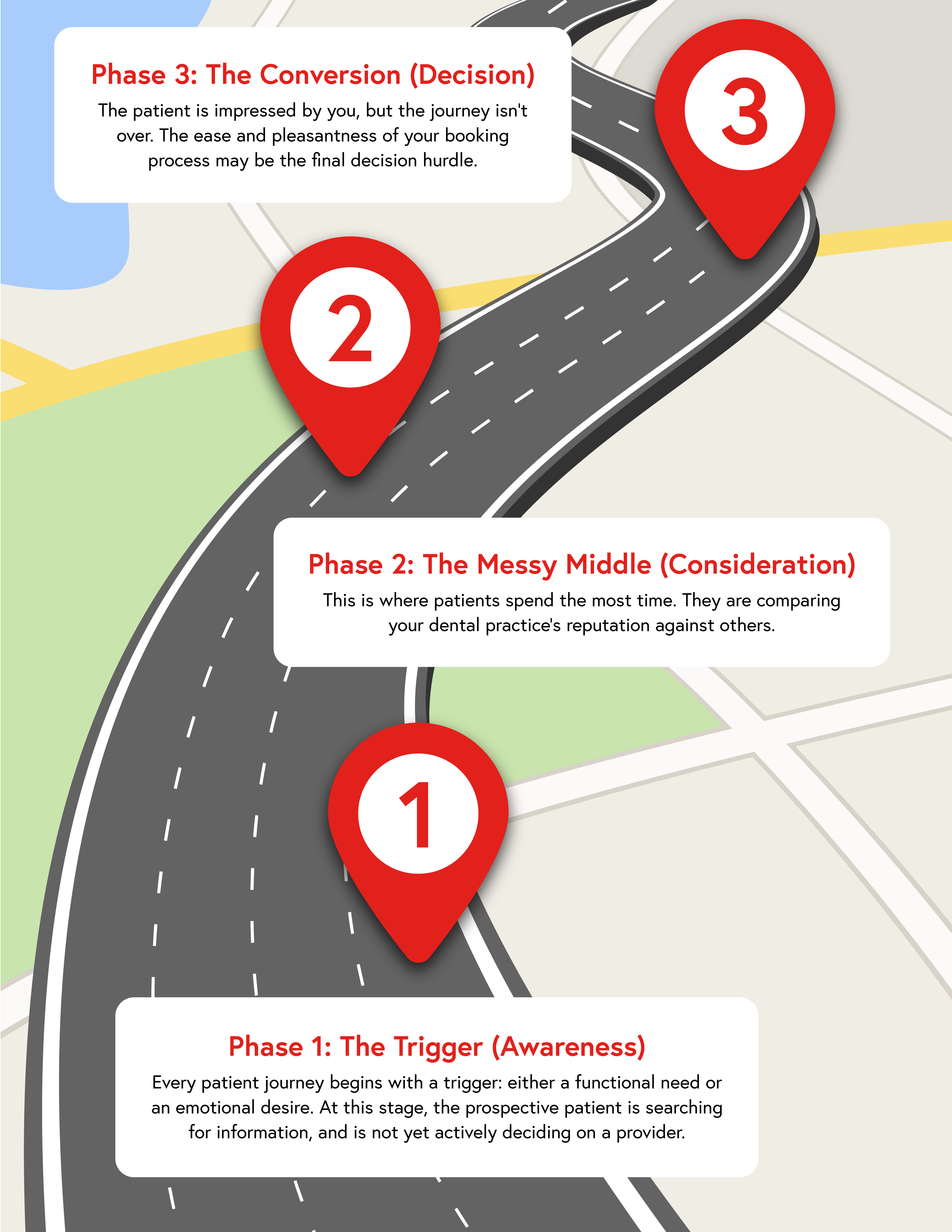 In the past, dental marketing was a simple funnel: a patient had a toothache, they searched for a dentist, and they called the first one they saw. Today, the journey has become a circular experience with multiple digital touchpoints. To compete with the best, you should aim to have a presence at every stage of this map.